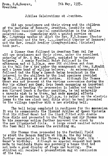 WRENTHAM’S CELEBRATIONS OF KING GEORGE 5th AND QUEEN MARY’S SILVER JUBILEE & KING GEORGE 6th’S CORONATION