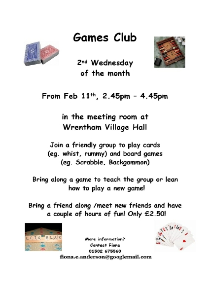 Wrentham Bowls Club, Wrentham Tennis Club or Wrentham & Mutford Football Club