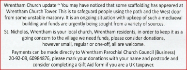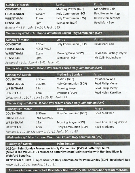 Events and activities are regularly advertised at www.wrenthamchapel.co.uk , on posters and in the Wren.
