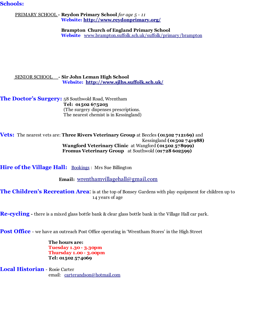 Times of services can be found in the Wren Magazine which can be purchased from ‘Wrentham Stores’, in the High Street, for the sum of 20p and on the Home Page of this website