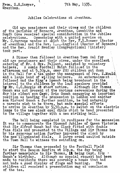 WRENTHAM’S CELEBRATIONS OF KING GEORGE 5th AND QUEEN MARY’S SILVER JUBILEE & KING GEORGE 6th’S CORONATION
